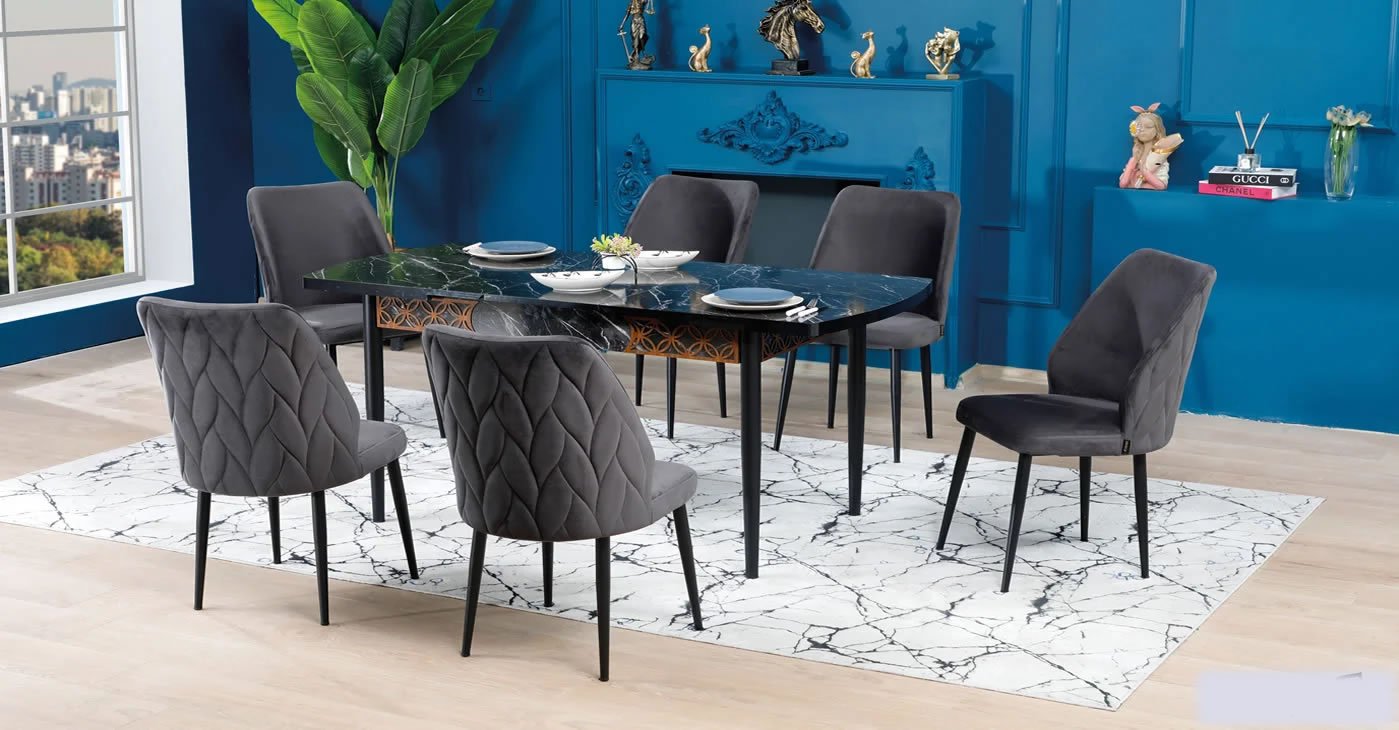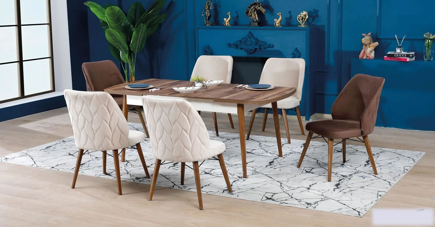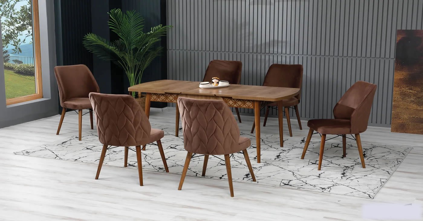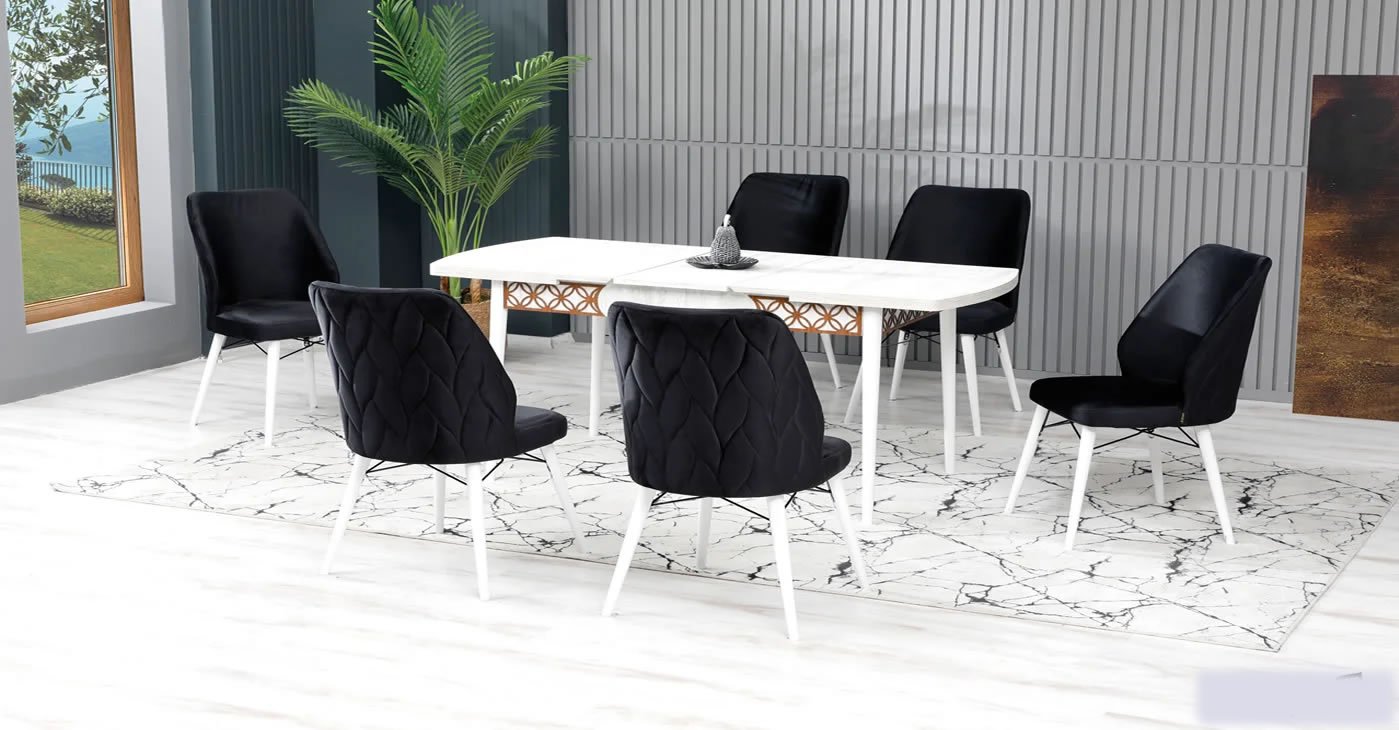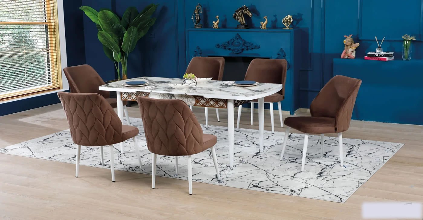 Our product: 6 chairs 1 table:80x130CM & Extendable size: 80x170 CM-- || Wipeable babyface fabric, table and chair are available in all color options. With & Without Laser.