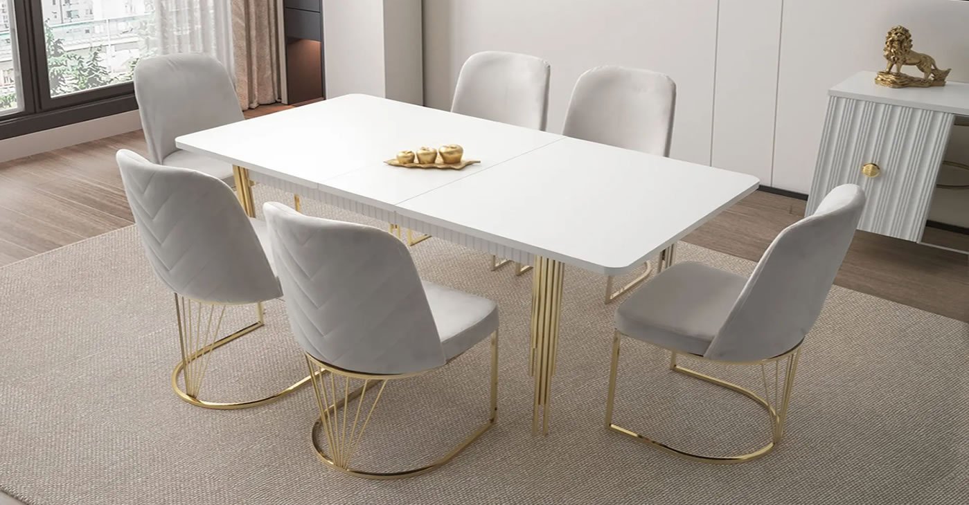 Our product consists of a set of Mirrorless Console, Console Mirror, Table and 6 Chairs. Our products are produced with first class workmanship and are made of wood and MDF. All color options are available. It has the feature of being opened and closed. | Console 180 - 45 - 82 | The table measures 92 - 150 - 90.