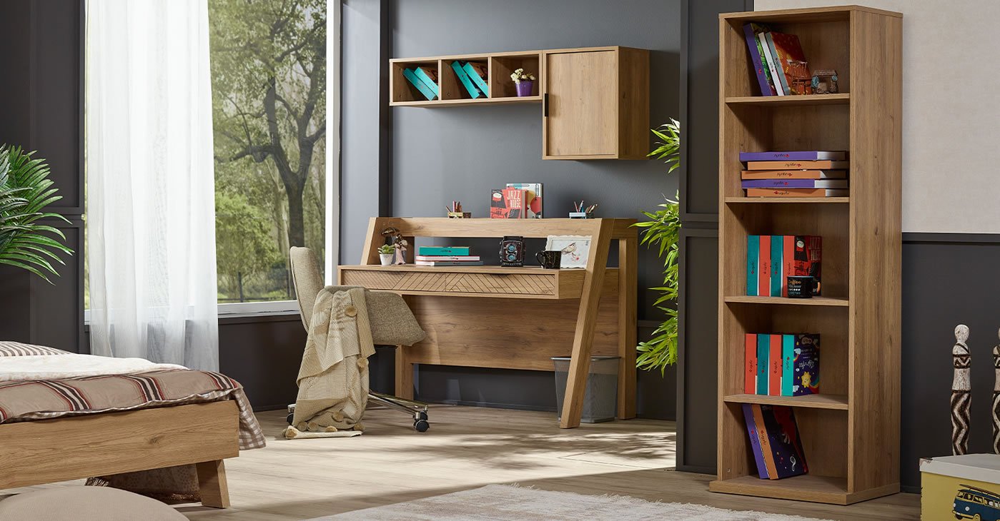 Our Product Content: Nightstand - Study Desk Upper - Study Desk Lower - Bedstead with Headboard (100*200) - 3-Door Wardrobe - Bedstead with Cubicles (90*190) The price is for a set. Product material is 1st Class Chipboard.