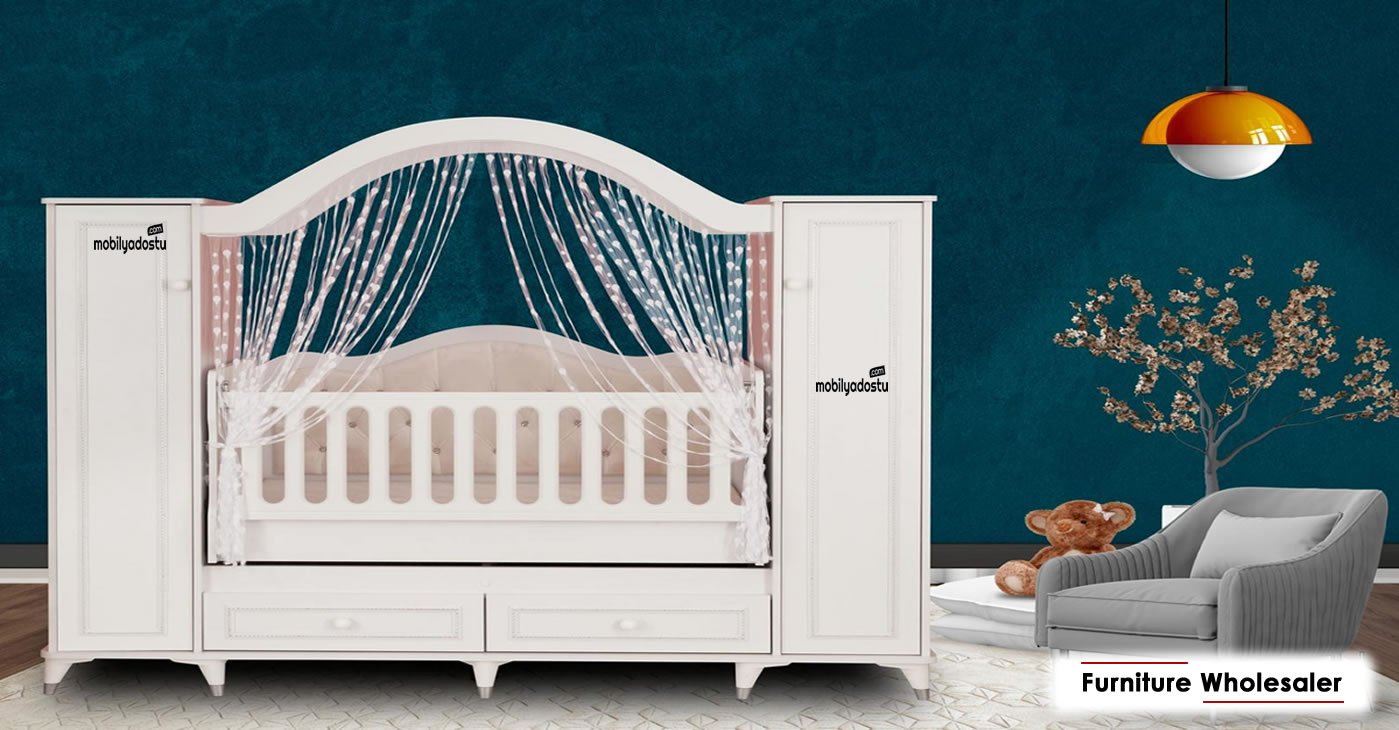 Product Details: Upholstered Back Section - Rocking Mechanism - Made of Chipboard Material - Elevator Railing System - 2 Cabinets + 2 Drawers - 58×116 Bed Size.