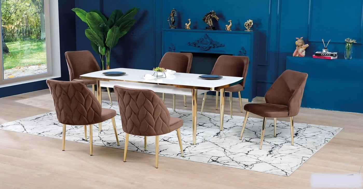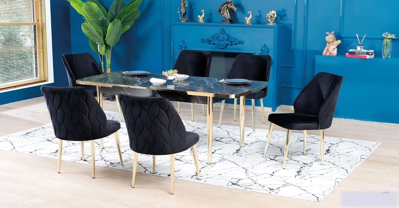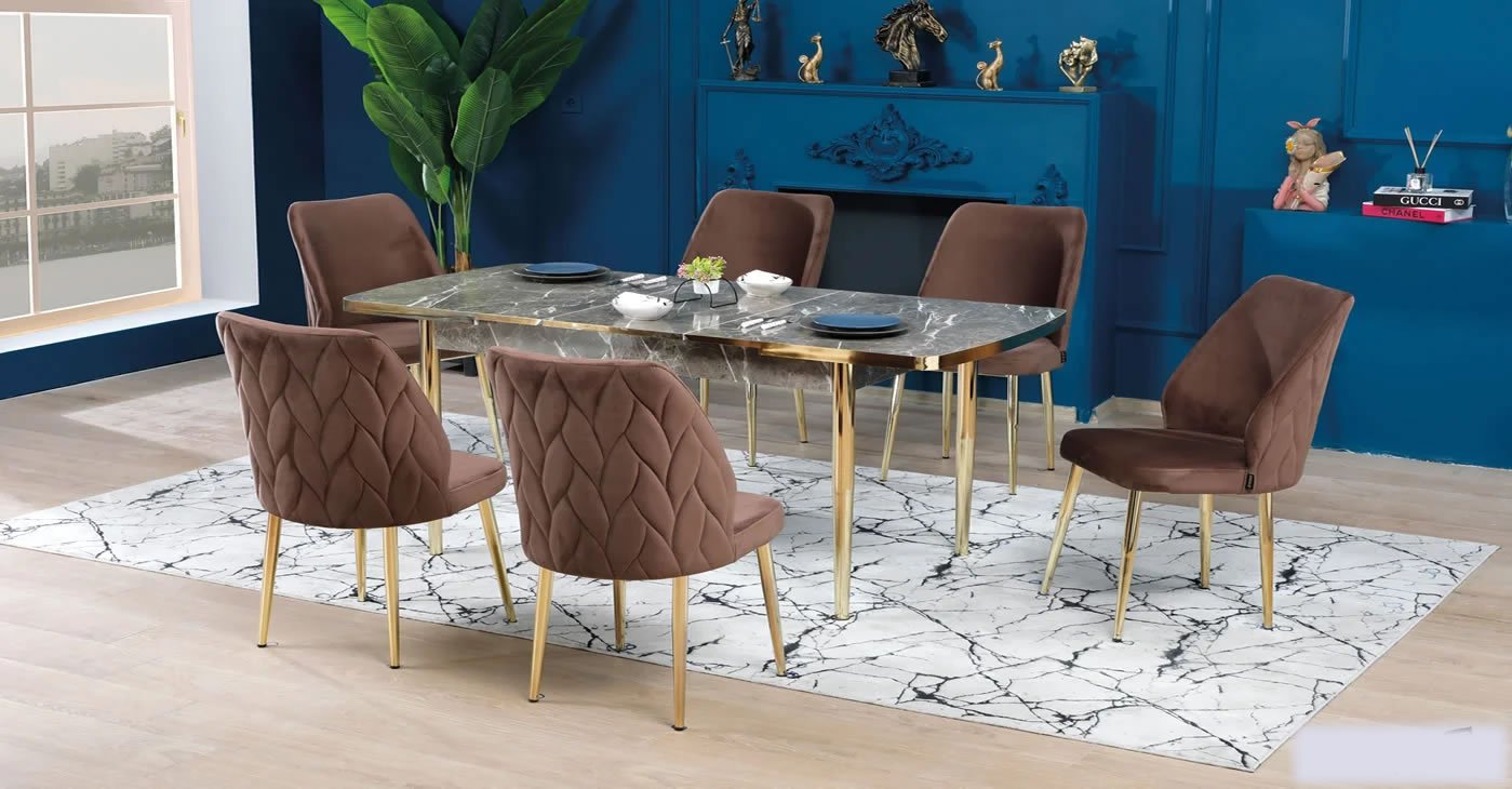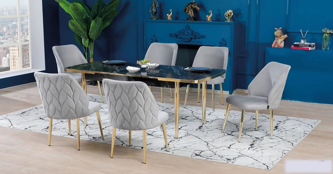 Our product: 6 chairs 1 table:80x130CM & Extendable size: 80x170 CM-- || Wipeable babyface fabric, table and chair are available in all color options. With & Without Laser.