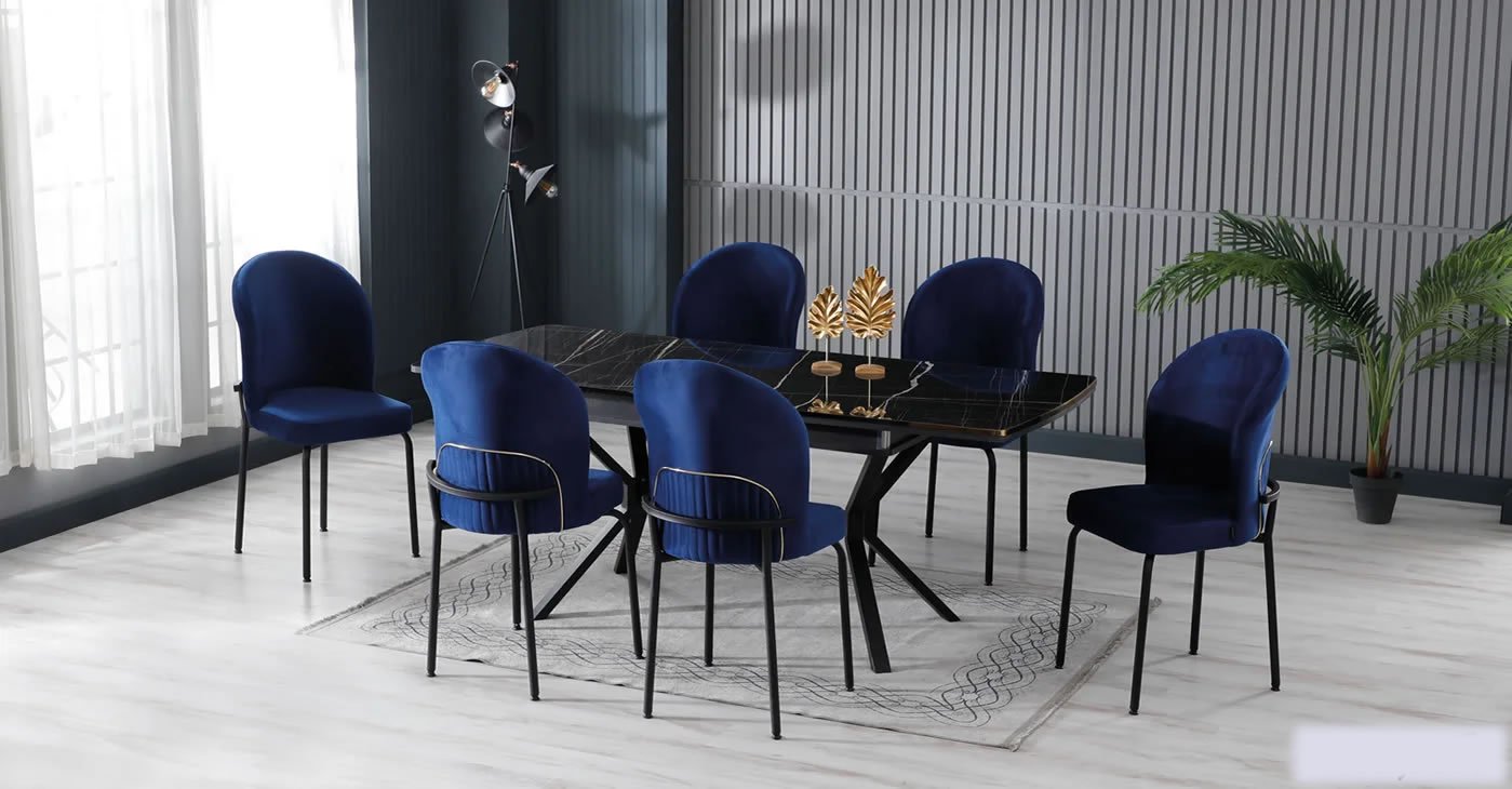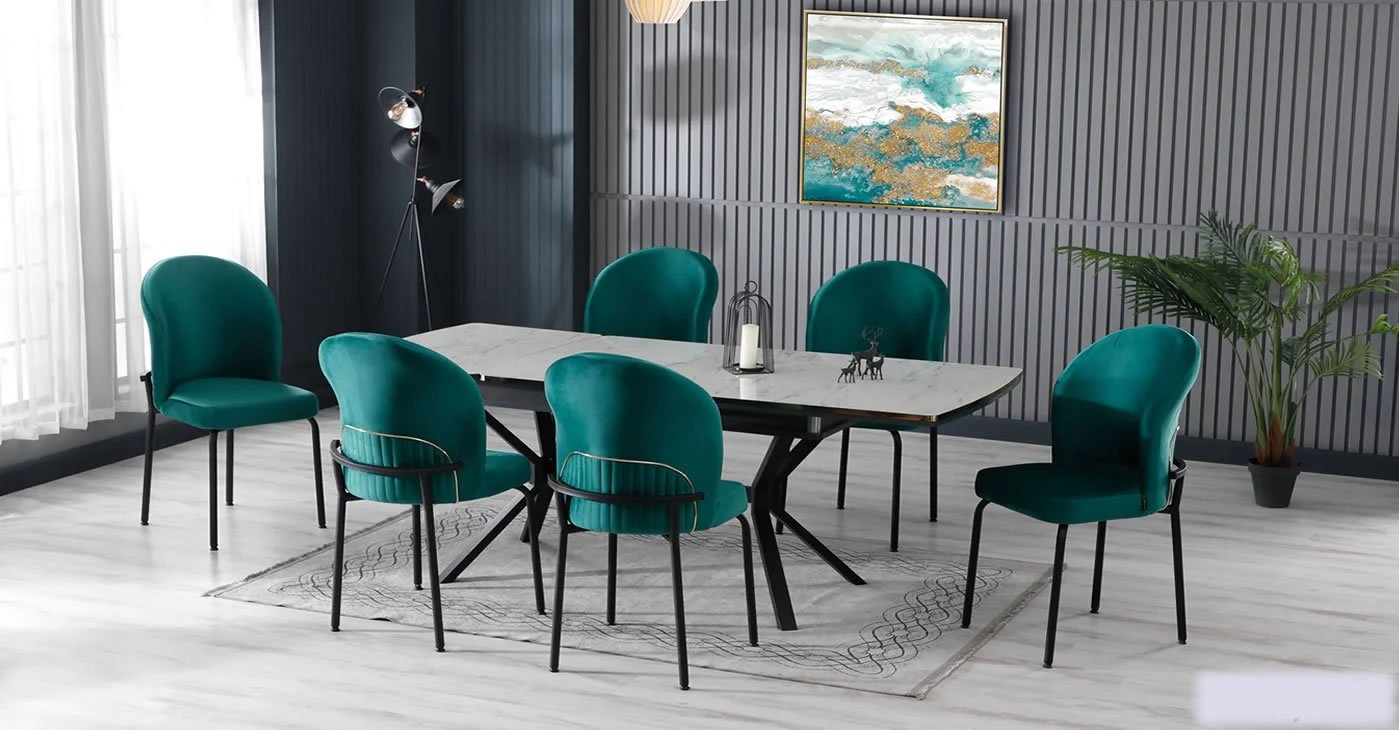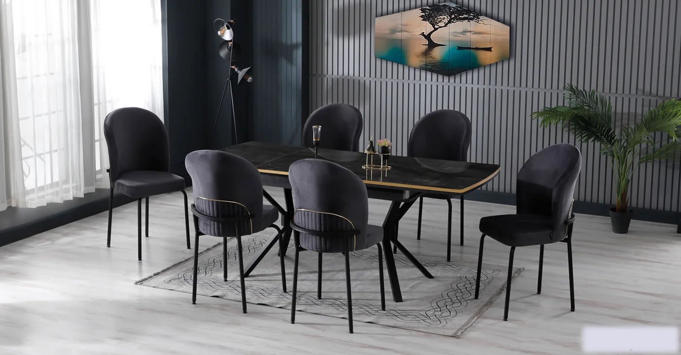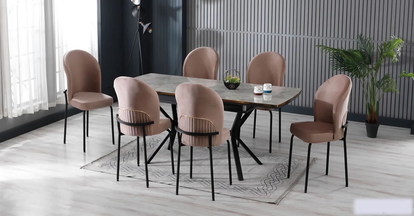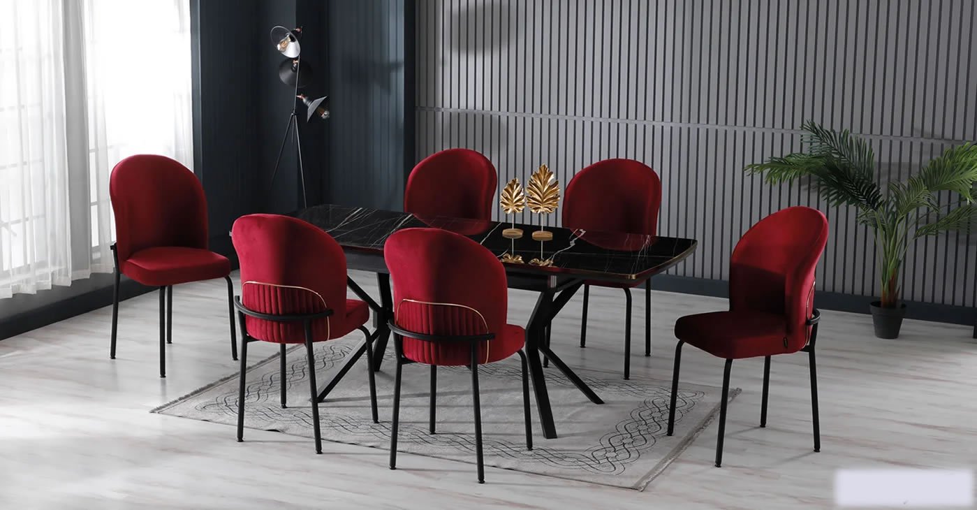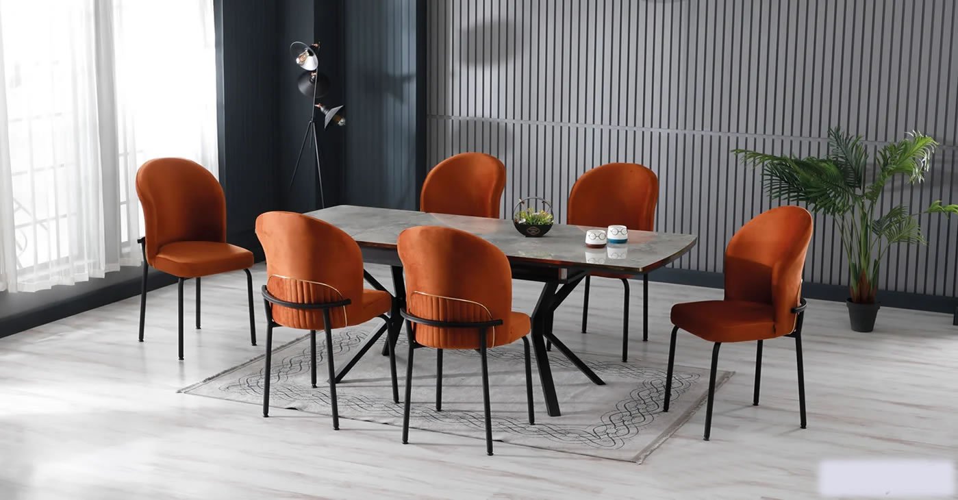 Our product includes: 1 table and 6 chairs. Product dimensions: Indoor 80x130 CM - Outdoor 175x80 CM | Product material details are in the images. Wipeable babyface fabric, table and chair are available in all color options.