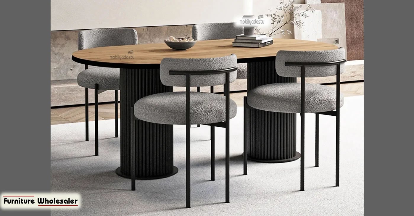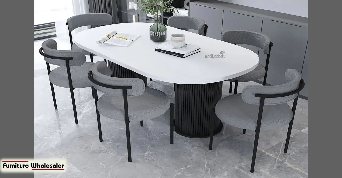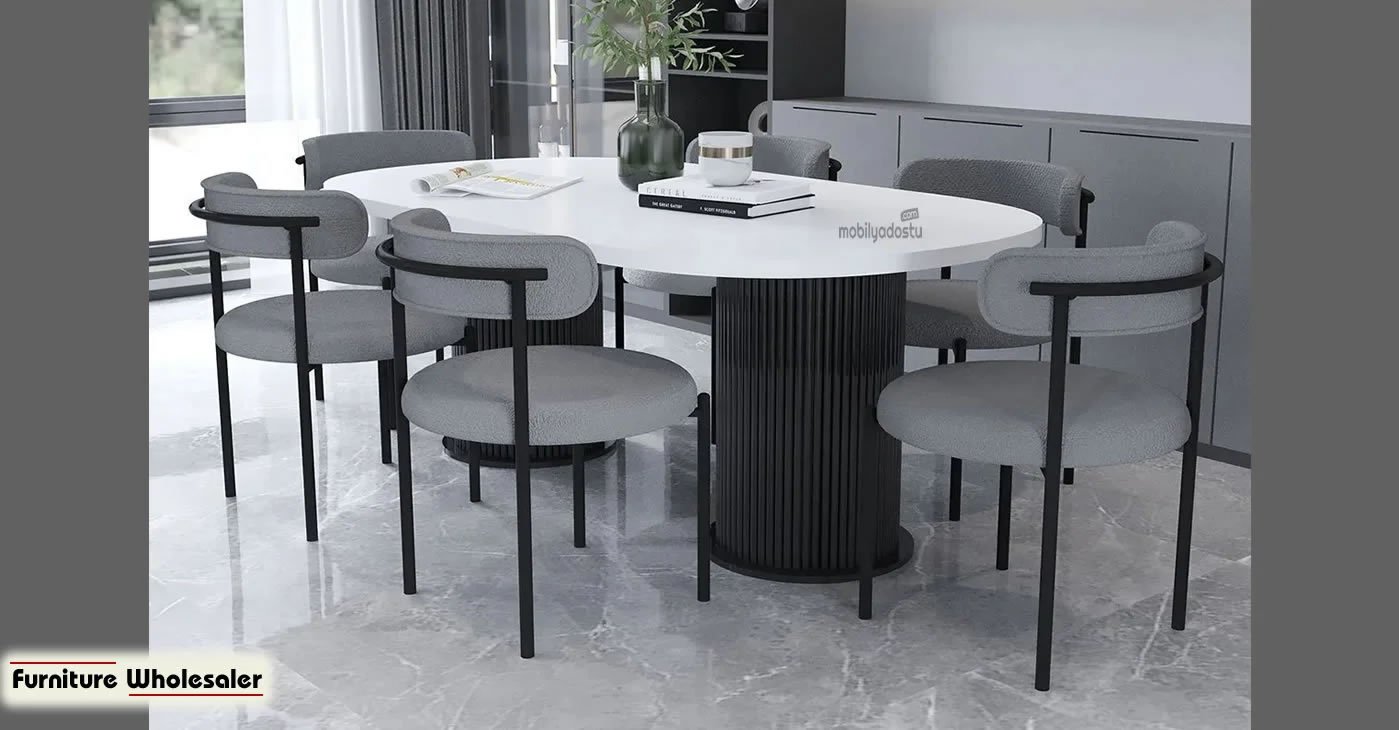 Ürünümüz 6 sandalye ve 1 masadan oluşan bir takımdır. Tüm kumaş renk seçenekleri mevcuttur. Masa ölçüsü 80 x 160 dır. | Ürün suntalam. | Ürün stok durumu mevcuttur.