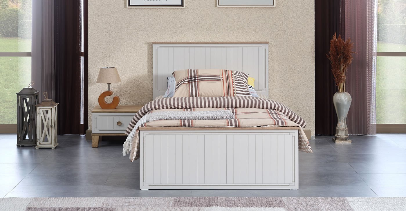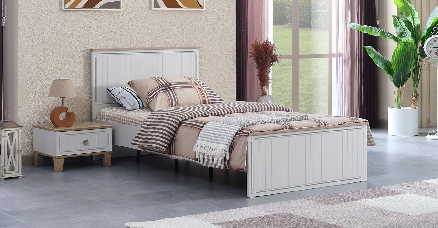 Our Product Content: Nightstand - Study Desk Upper - Study Desk Lower - Bedstead with Headboard (100*200) - 3-Door Wardrobe - Bedstead with Cubicles (90*190) The price is for a set. Product material is 1st Class Chipboard.