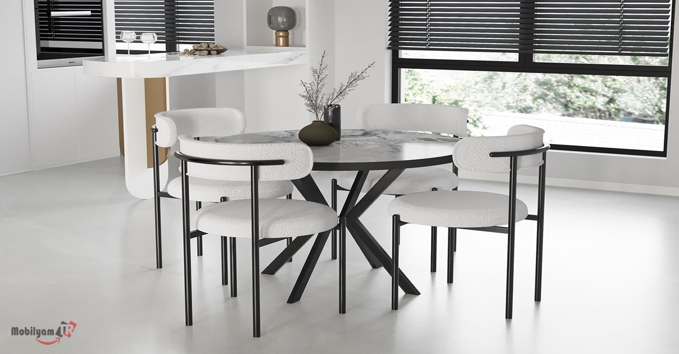 Ürünümüz 4 sandalye ve 1 masadan oluşan bir takımdır. Tüm kumaş renk seçenekleri mevcuttur. Masa ölçüsü 90 x 90 dır. | Ürün suntalam. | Ürün stok durumu mevcuttur.