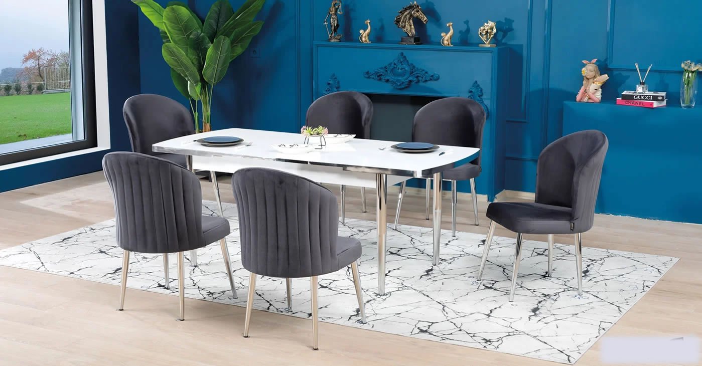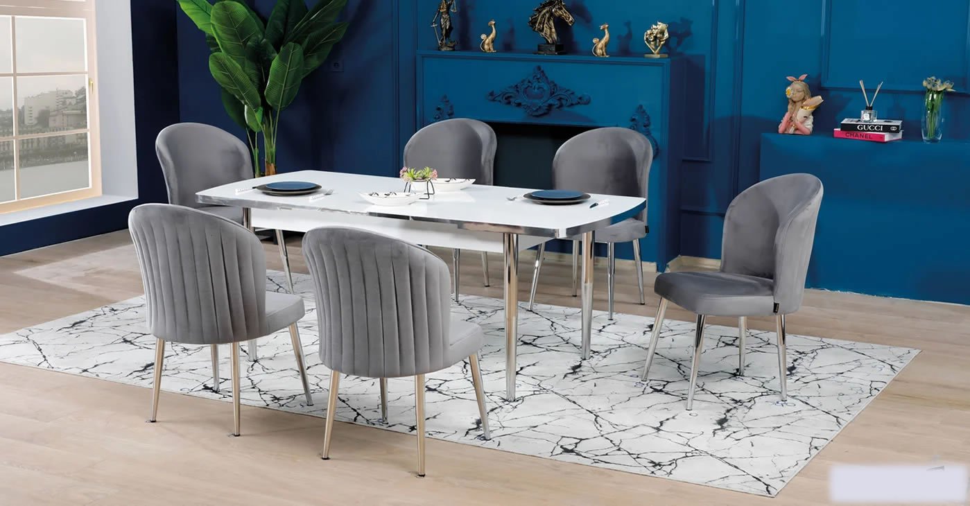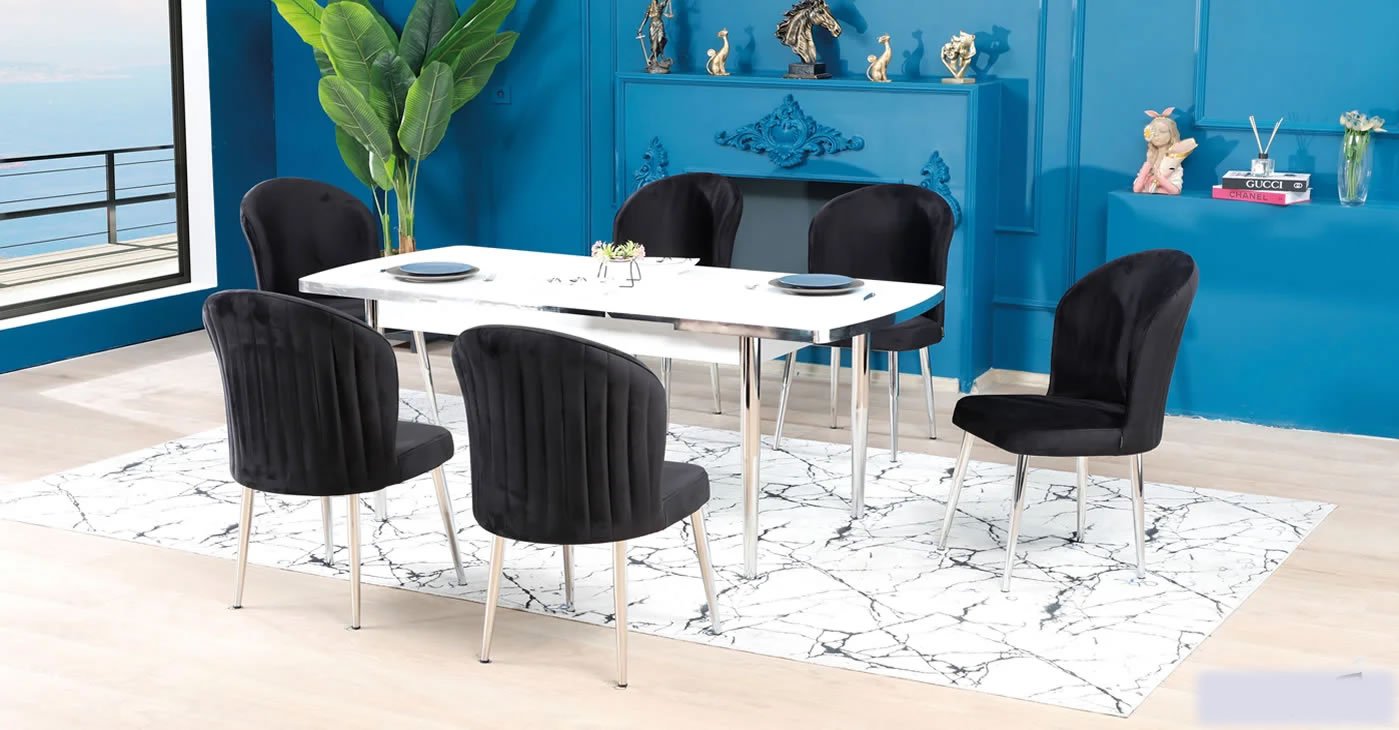 Ürünümüz: Kelebek Masa, 6 Sandalye dir. Ürün Boyutu: Kapalı 80x130 CM - Açık 175x80 CM | Ürün malzeme detayları resimlerde mevcuttur. Silinebilir babyface kumaş, masa ve sandalye tüm renk seçenekleri mevcuttur. Sandalye ek istenirse adet fiyatı: 3.150 TL dir.