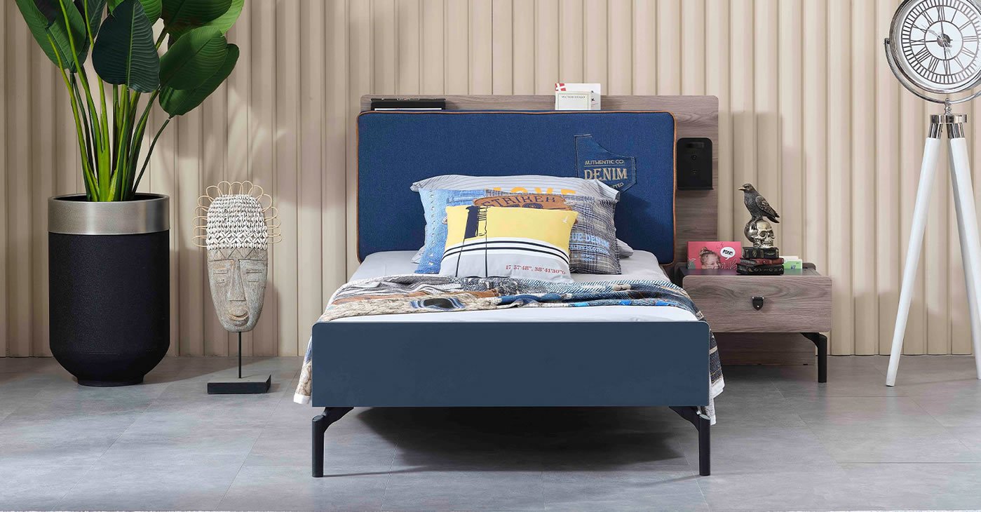 Our Product Content: 3-Door Wardrobe - Lower Study Desk - Upper Study Desk - Bedstead with Headboard (100 * 200) - 1x Nightstand Available. The product is made of chipboard.